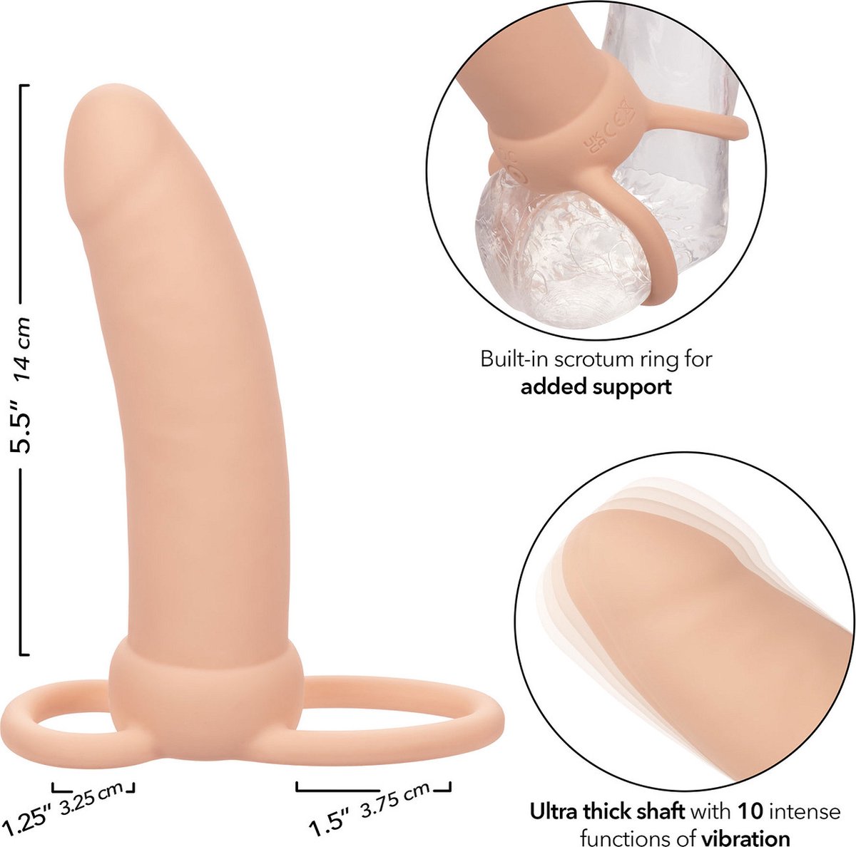De grotere omtrek, met een omtrek van 12,75 cm, versterkt de sensaties.
